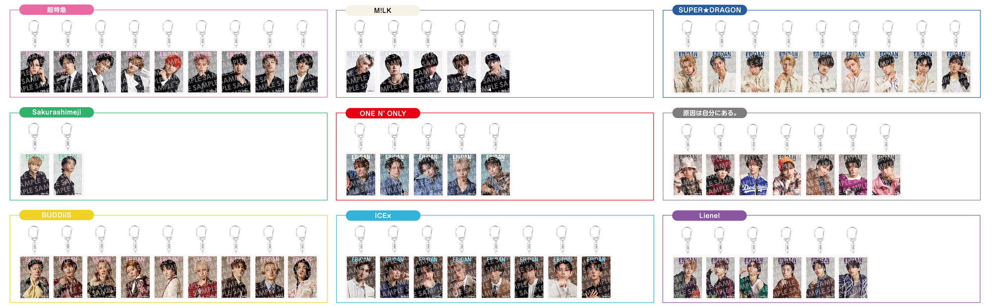 選択いただいた『EBiDAN Visual Dictionary 2026』COVERのグループのアクリルキーホルダーが付きます。