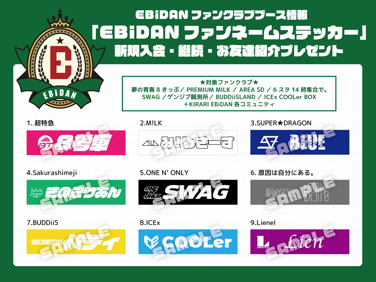 ※『EBiDANファンネームステッカー』は無くなり次第配布終了とさせていただきます。予めご了承ください。